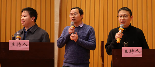 团拜会第一部分是邀请人才代表为老师们做经验分享。应用数学系主任陈和柏、基础数学系主任胡烨耀、信息与计算科学系主任邓又军依次上台分享,精心总结项目申报经验和科研心得体会干货内容,跟与会老师探讨交流。