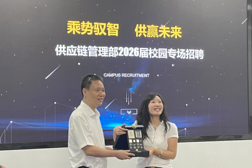 接受赠礼。参会同学与华为供应链各位专家围绕招聘岗位、职业发展、技术需求等进行沟通交流。