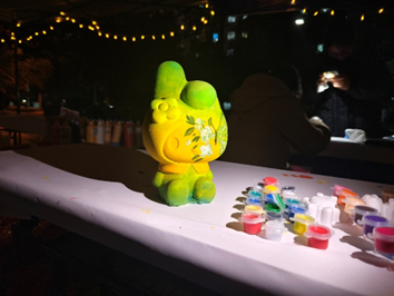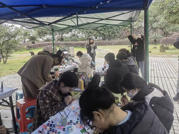 本次公益义卖活动以DIY涂鸦摆件为主要形式。志愿者们在南校区服务广场摆设了数个工艺品涂鸦的摊位,提供各种颜色的颜料和刷子,以及一些参考样品。参与活动的师生可选择的DIY项目包括石膏娃娃,石板画,数字油画,手印画等,购买相应物品后就可在指定区域进行涂鸦创作。