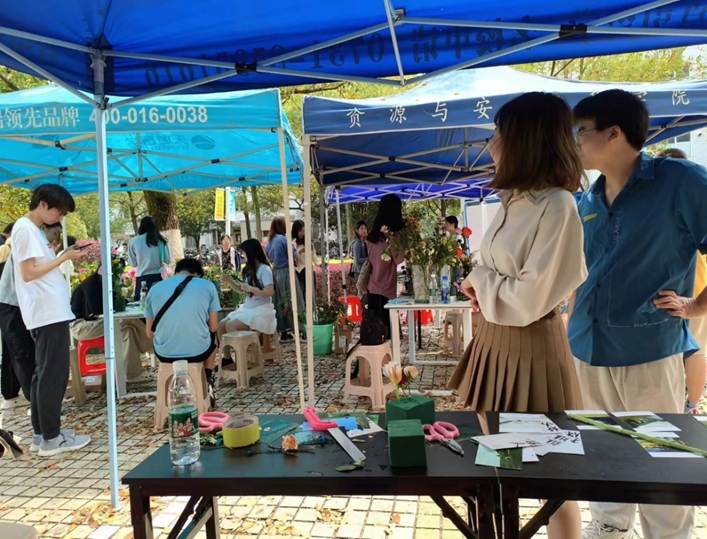 朋辈心理互助会及山有嘉卉花艺社在南校区升华广场顺利开展“花样青春,卉苒芳华”四院联合春日插花活动。