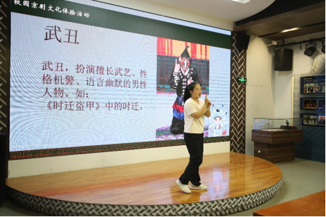 活动伊始,京剧老师娓娓道来,向大家介绍了京剧的起源与发展,从生、旦、净、丑四大行当的角色特点到其文化内涵,老师言辞间的情感与文化的厚重感交织,让在场同学切身体会到了京剧作为国粹的艺术价值与历史意义。