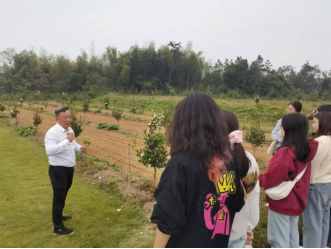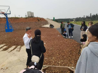 的师生党员到来,并详细介绍了研究院的发展概况。他带领大家参观了油茶种植基地,深入讲解油茶的无性繁殖特性、花果同期现象以及现代化农业技术在种植、采摘、榨油各环节的应用。