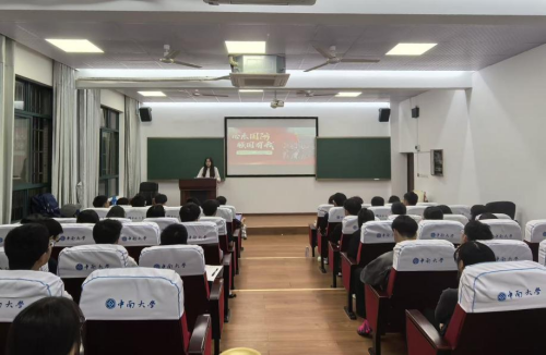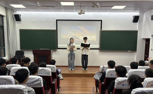 于数理楼135报告厅开展“爱我国防”主题演讲比赛初赛,并同步开展主题宣传活动,60余名2025级新生现场观摩。