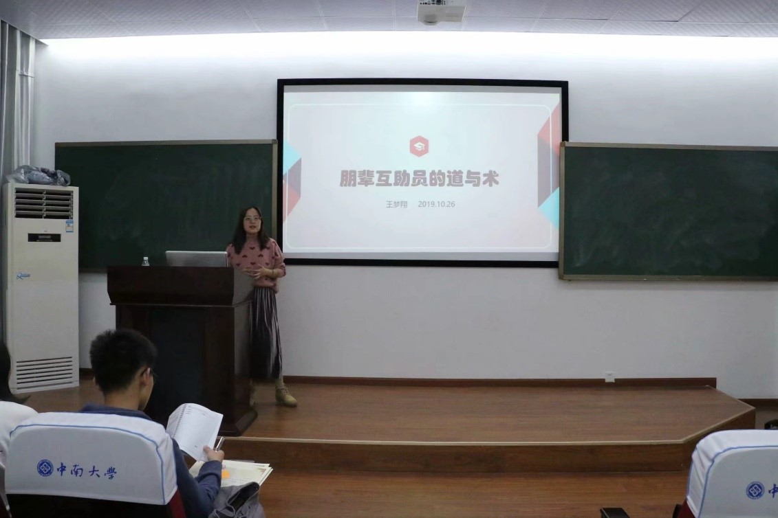解心团指导老师、心理健康教育中心王梦翔老师,于10月26日17:30在数理楼135报告厅为数统院全体心助队成员进行了主题为“朋辈互助员的道与术”的工作技能培训大会。