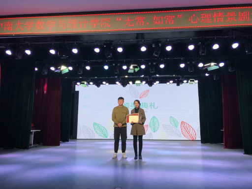 ,到大学生如何克服创业路途中的困难,各班的选题都紧紧围绕着大赛主旨;不论是友情、爱情还是亲情,各种美好真挚的情感在大赛中都有所体现;小到日常矛盾的处理,大到对抑郁症患者的关怀,每一个角度都体现出数统院学子强烈的社会责任感和浓浓的人文关怀。大赛中还穿插了许多趣味小游戏。小游戏既让参与者乐在其中,也让台下的观众笑个不停,使现场的气氛更加活跃。在工作人员和剧组人员的共同努力下,大赛圆满结束。最终,研究生剧组凭借优质的剧本和精湛的演技折桂,2004、2007班剧组获得二等奖,2008、2002及2001班剧组获得三等奖。