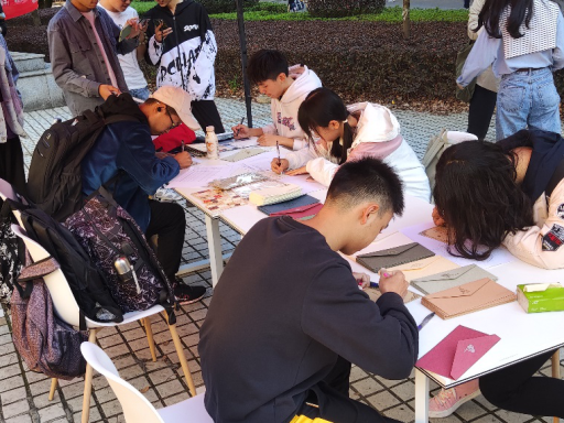 本次活动分为写信和寄信两个环节。写信环节中,同学们可以自行选择喜欢的信纸与信封,然后在纸上填满心意,并亲自装封,此过程中同学们都满怀喜悦之情。