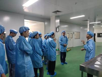 在实习期间,单位的总经理给了同学们一次车间体验的机会。7月13日在车间负责人苏丕超的带领下进行药品生产的车间参观,生产过程涵盖了净选、筛选、洗润、风选、切药、干燥、破碎、称量、灭菌九个生产步骤,经过这次车间体验,让同学们切身体会到了整个流程的严密和繁复。方便同学们继续推进实习项目,实现生产实习的课题目标。