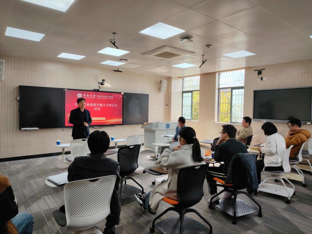在数理楼235室开展新进教师试讲活动。刘再明教授以及校督导周英告教授受邀参加,对青年教师的试讲予以点评。活动由周岳副院长主持。
