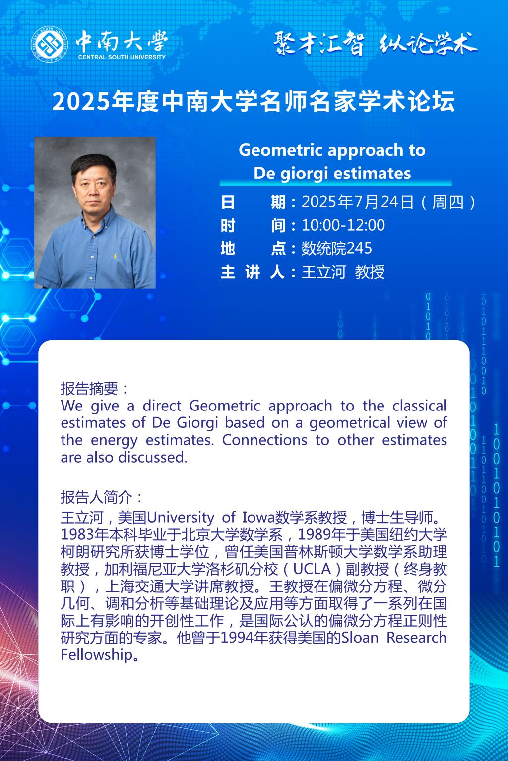2025年度必威 名师名家学术论坛——王立河教授学术报告